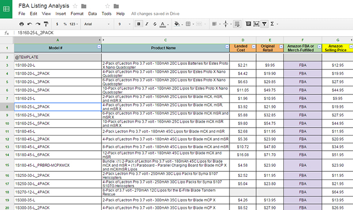 I developed a complex Google Spreadsheet to calculate the net profit of each product listing after all of Amazon’s fulfillment fees are deducted from the gross revenue of each sale.